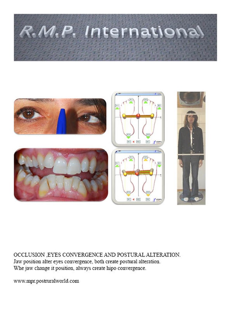 Stomatognatic system is close related with occulo motor system, changes of jaw position always alter eyes convergence, it create big posture alteration, when that happens we need the intervention of interdisciplinary therapy. M.P.R help in this cases .
